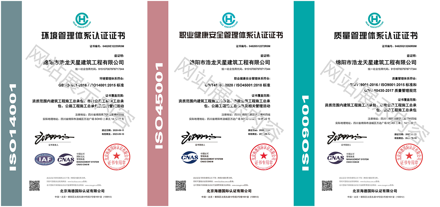 浩龍?zhí)煨浅墙瘓F有限公司,2007年成立于“李白故鄉、中國科技城”—四川省綿陽市,企業注冊資本金5.0008億元。公司共有27項建筑業企業資質,其中國家一級資質11項,二級資質10項,三級資質5項,特種資質不分等級1項,類別涵蓋建筑、市政、水利、機電、隧道、起重設備安裝等基礎及未來發(fā)展重點專業。公司下設三個辦事處,業務范圍輻射全國,在建項目三十余個,累計完成產值超11億元。公司是綿陽市建筑施工企業協會副會長單位、綿陽遂寧商會會長級單位、綿陽首批建筑業綠卡企業,在綿陽本地企業中綜合實力名列前茅。
